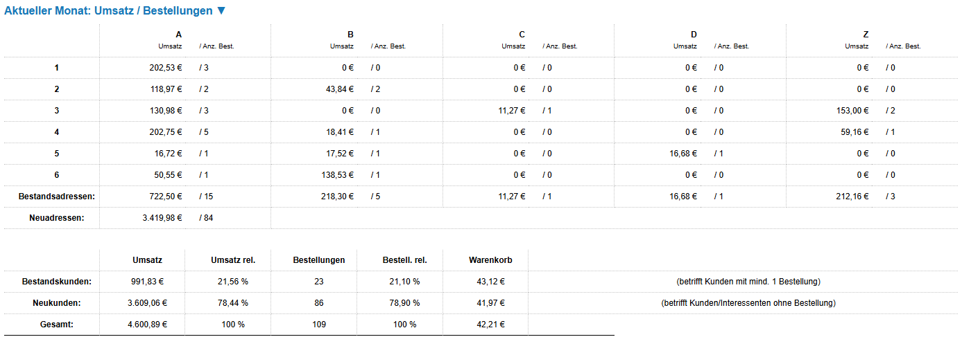Customa MIS Aktueller Monat Umsatz und Bestellungen